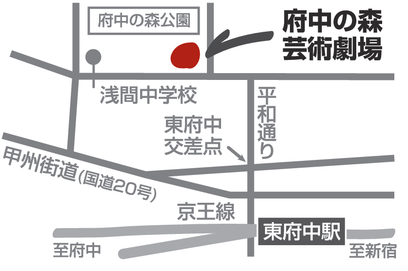 武蔵小金井駅南口(5番乗り場)より東府中駅行きバス約20分、東府中駅下車 徒歩 約7分